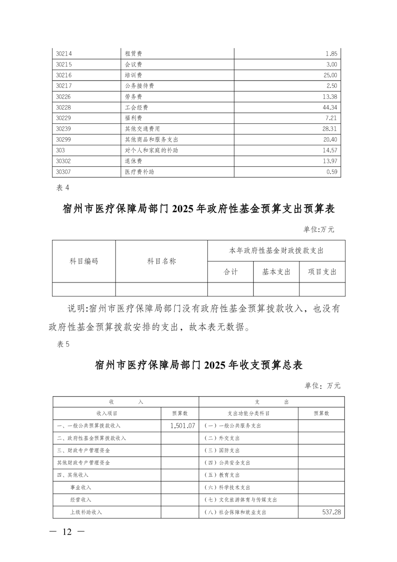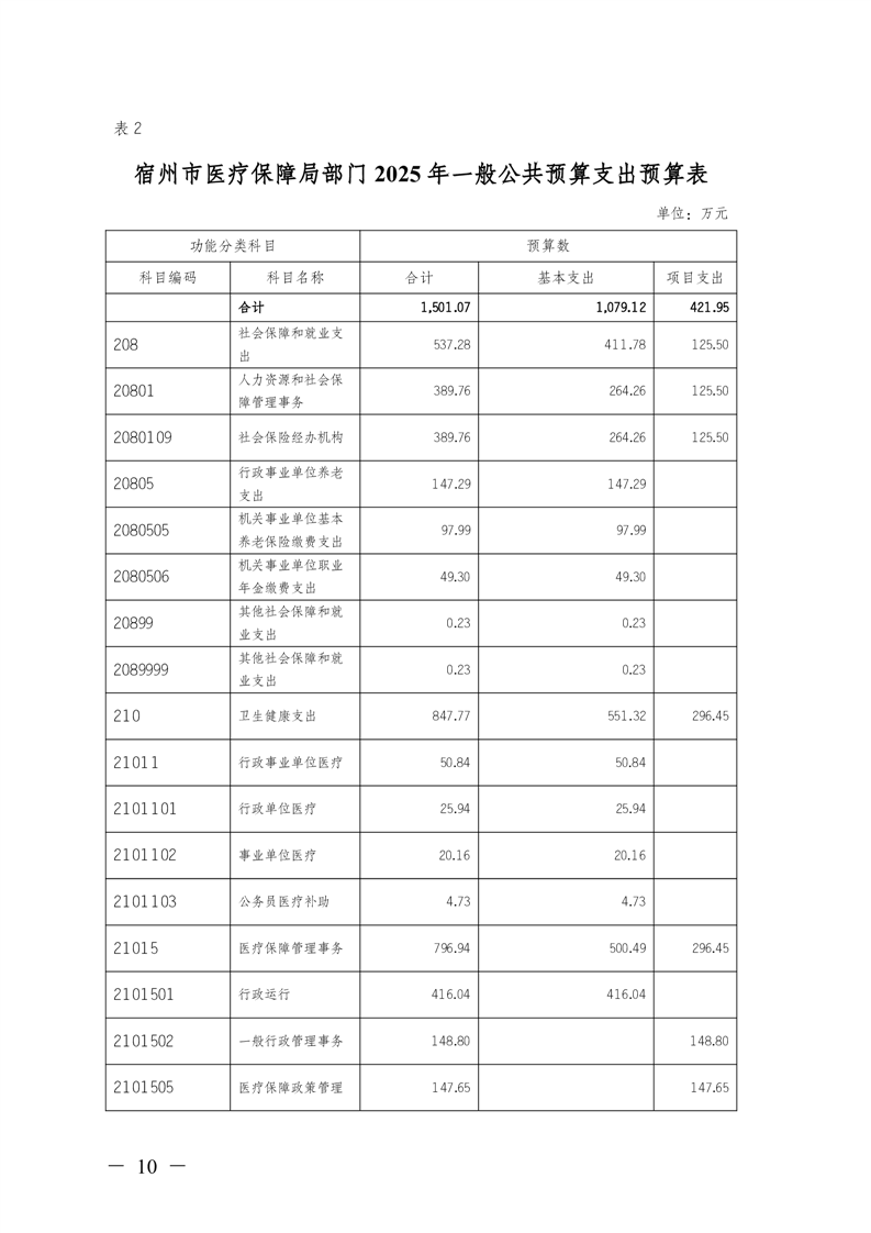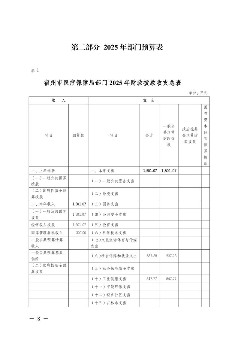 宿州市医疗保障局2025年部门预算 |