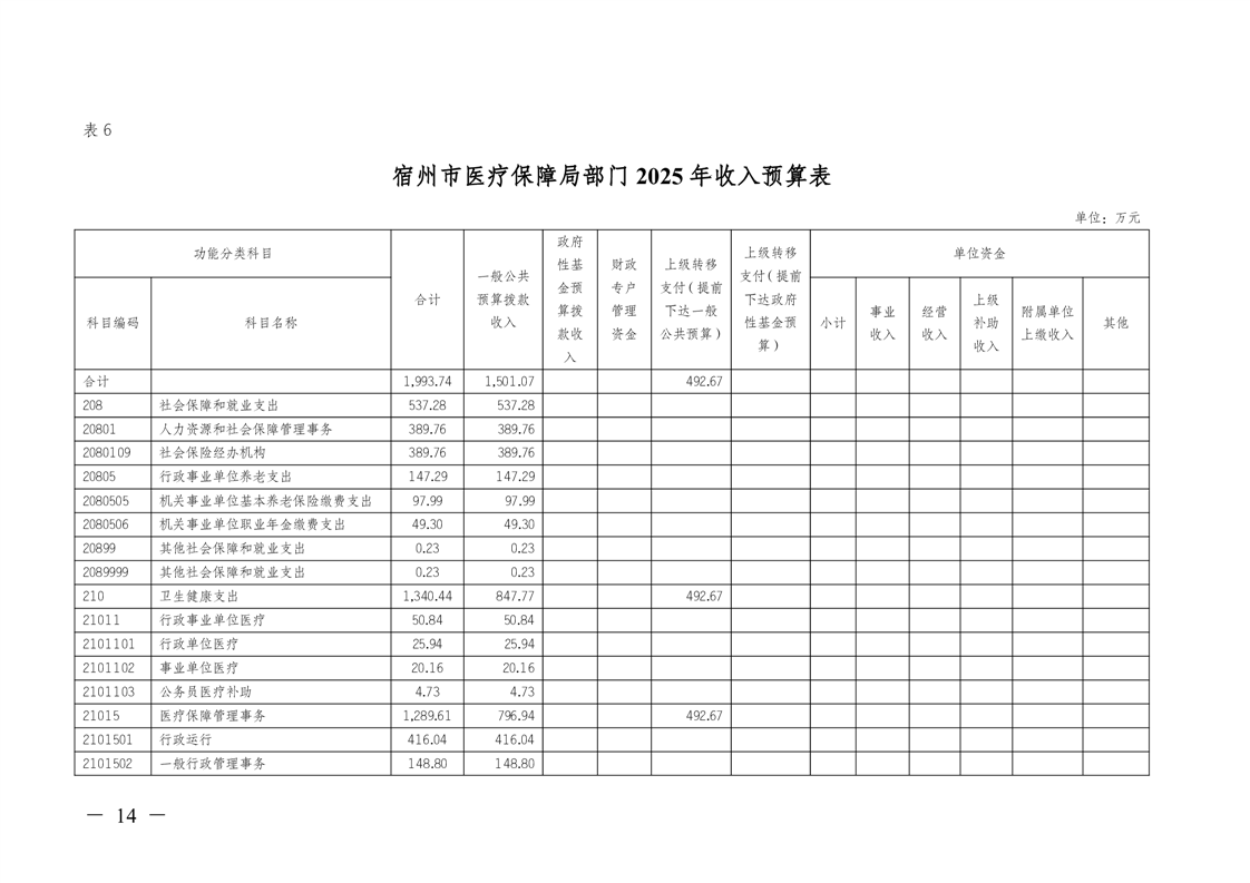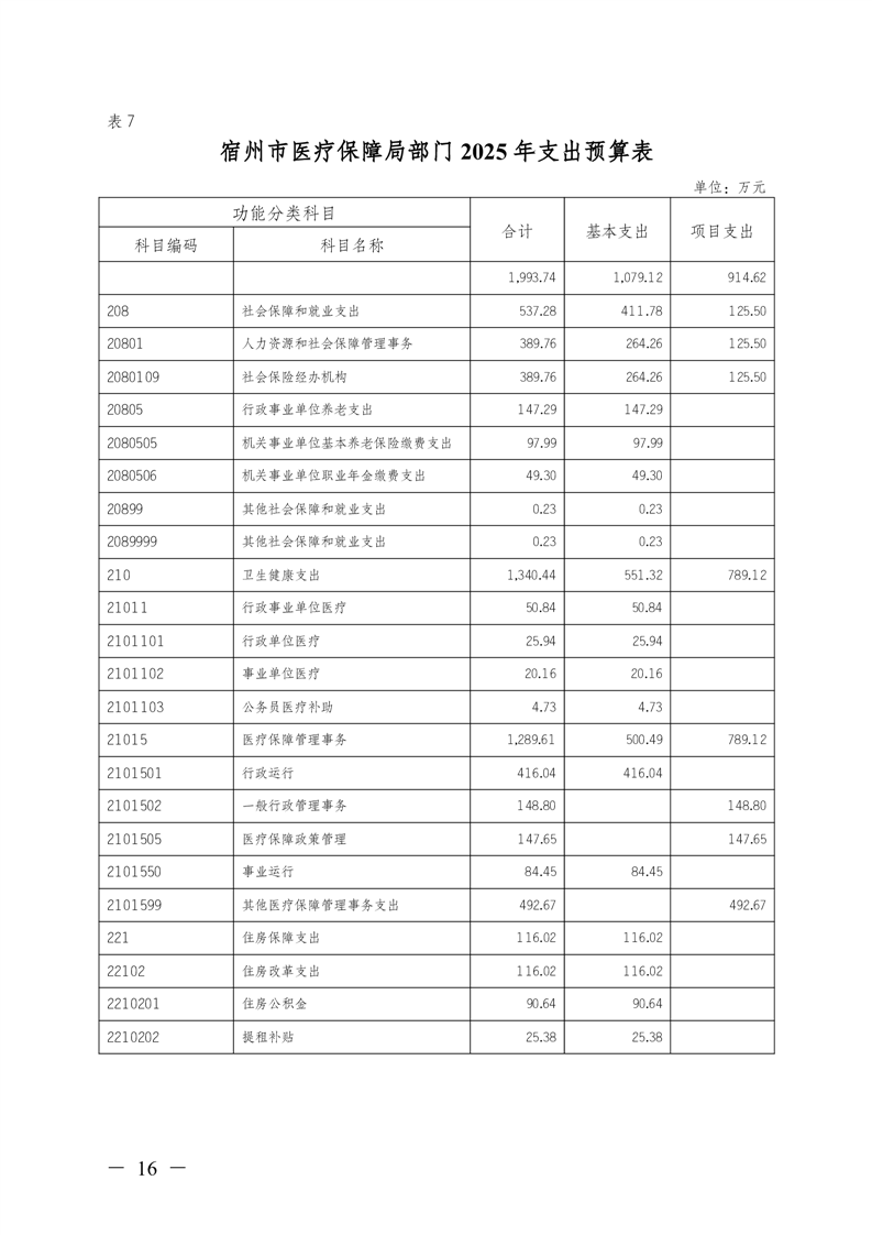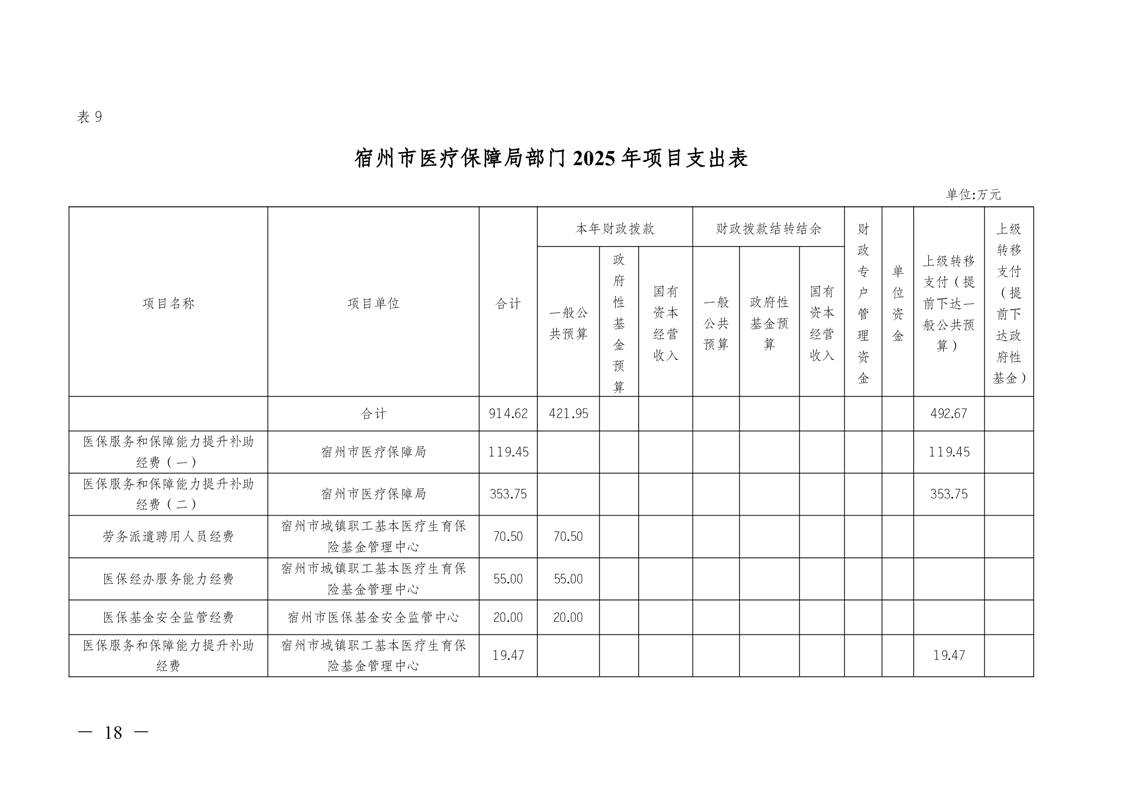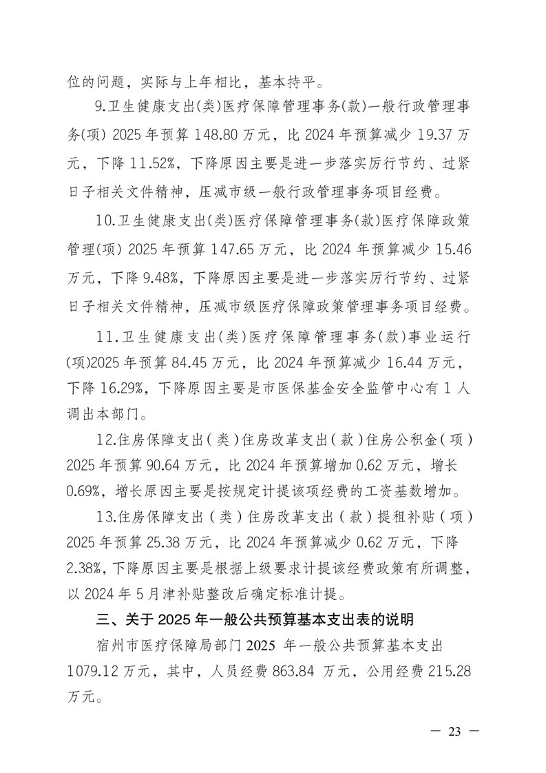 宿州市医疗保障局2025年部门预算 |